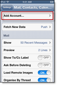 4. Now scroll to the bottom of the Contacts section and set the Default Account.